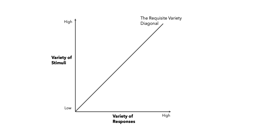 In Ashby Space, this balance lives along a diagonal: Where the variety of your responses matches the variety of the world you’re engaging with.